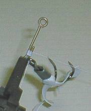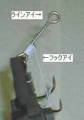 |  |  | フックアイが伸びてフックが外れることの無いよう、糸でしっかり巻きます。 口の部分からの水の浸入を防止するため、ラインアイの付近にも巻きます。 ※ ラインアイをロウ付けしておけば強度はさらに増します。(バーナーなどが必要) |