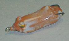 |  | 今回のモデルとなるフロッグは、バレーヒルの「X.O.R」。 フロッグのボディからフックを引っ張り、中身を引っこ抜きます。 |